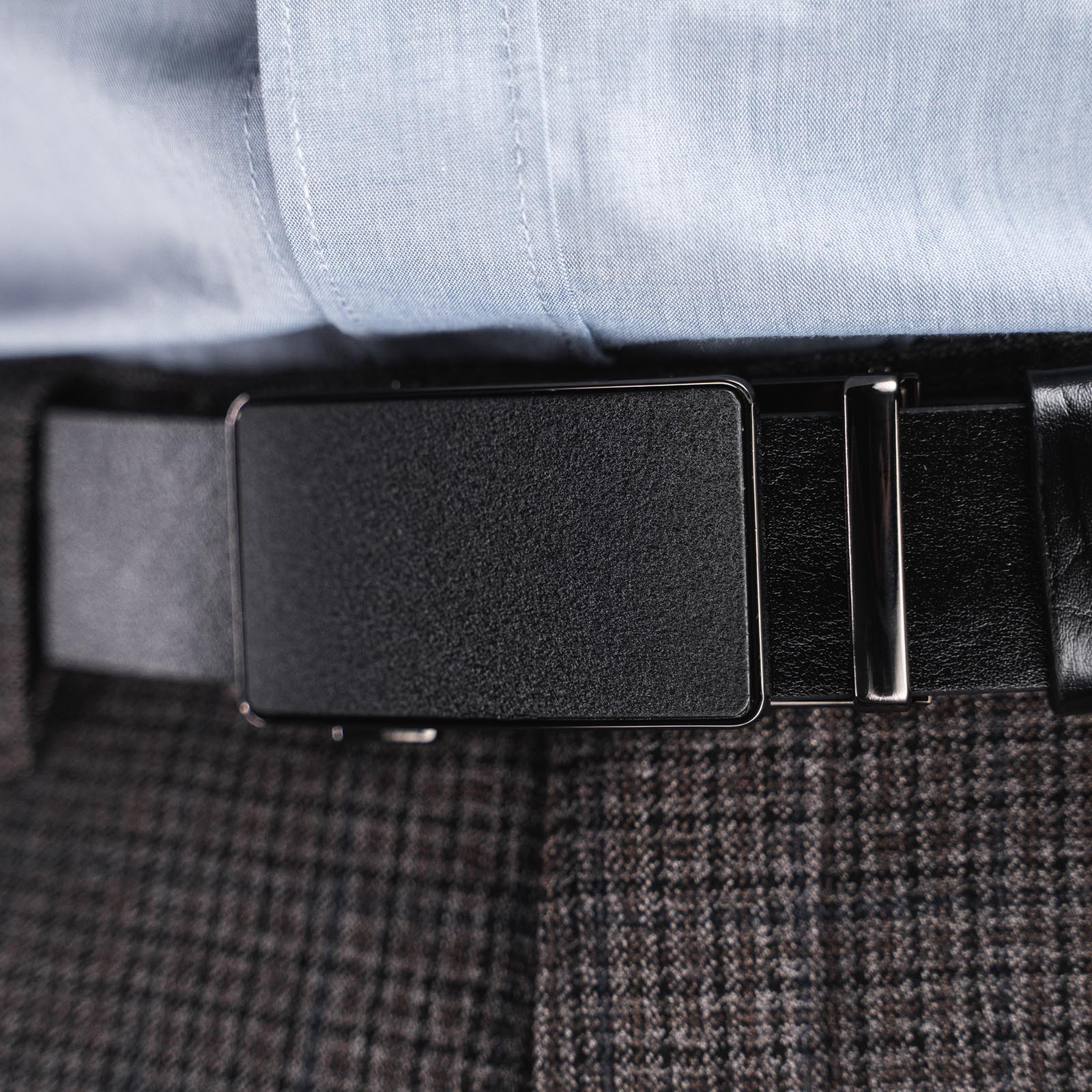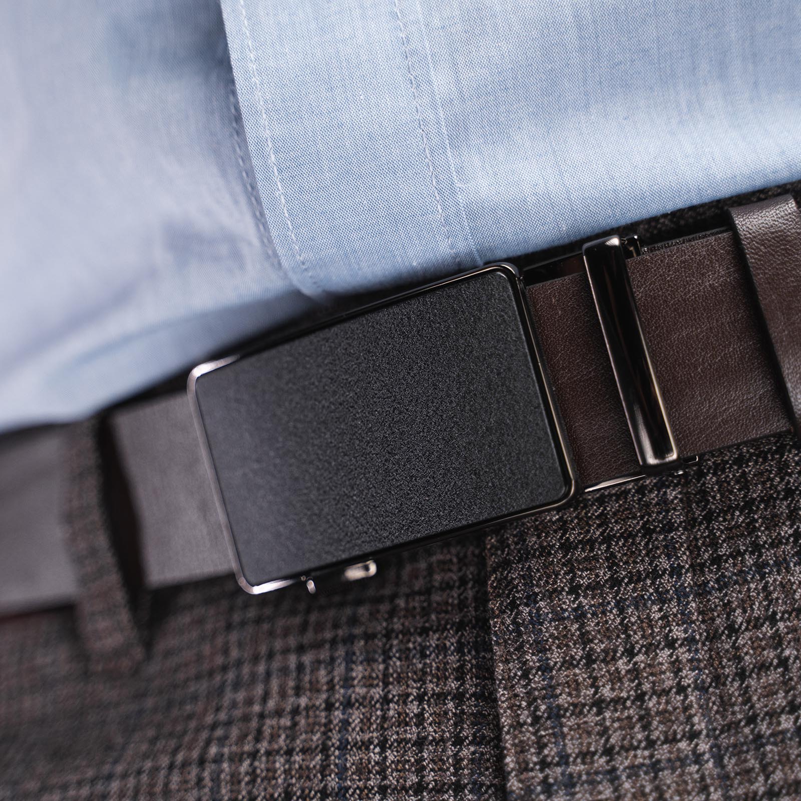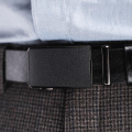 Ремень Zavtra сделан из натуральной кожи толщиной 3 мм. Металлическая пряжка — автоматическая. Специальный механизм позволяет отрегулировать ремень, ослабив или затянув его с точностью до нескольких миллиметров.