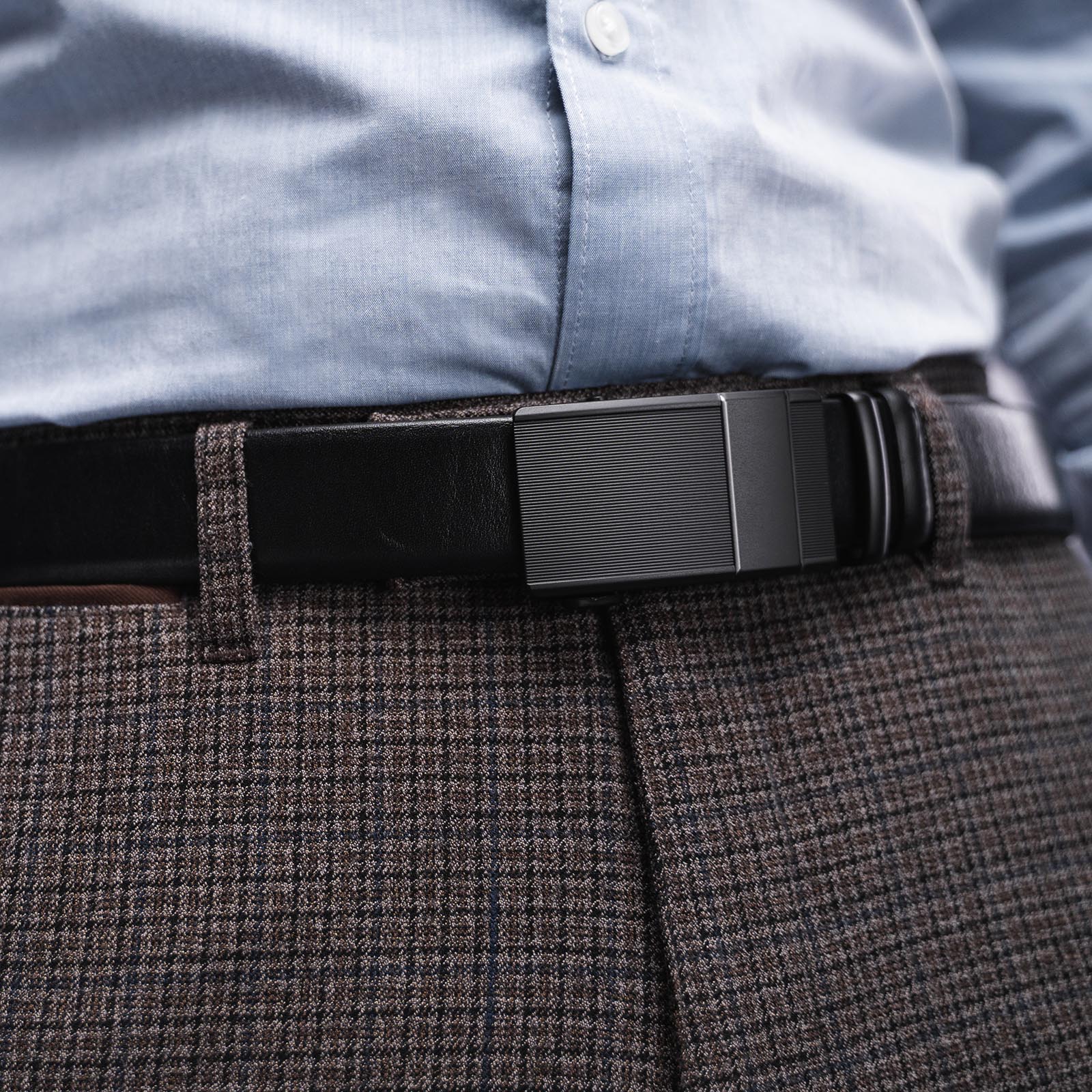 Металлическая пряжка — автоматическая. Специальный механизм позволяет отрегулировать ремень, ослабив или затянув его с точностью до нескольких миллиметров. Пряжка расстегивается и застегивается одним движением, но при этом прочно фиксирует ремень.