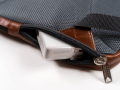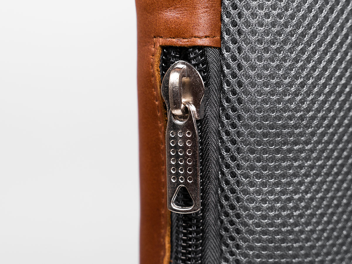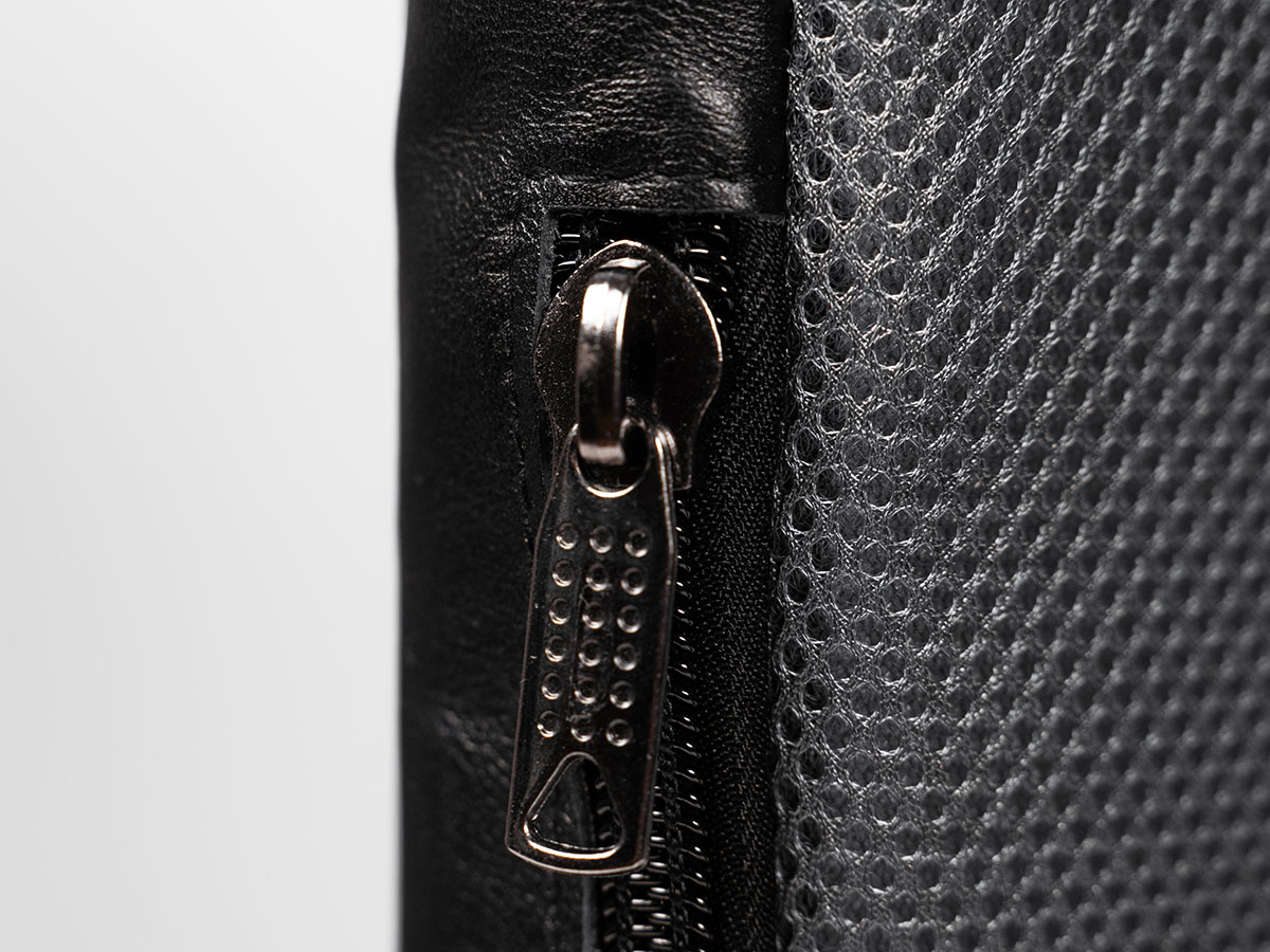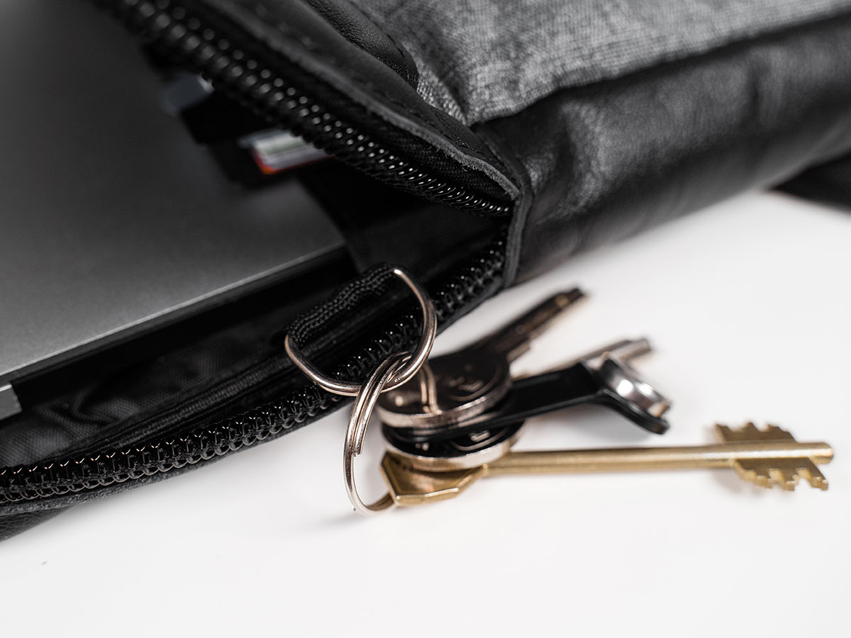 В рюкзаке два отделения с молниями. Основное — для ноутбука или планшета. Боковое подойдет для документов или мобильного телефона и зарядки. Оно сделано таким образом, чтобы вы могли получить доступ к содержимому, просто перевесив рюкзак на правое плечо.