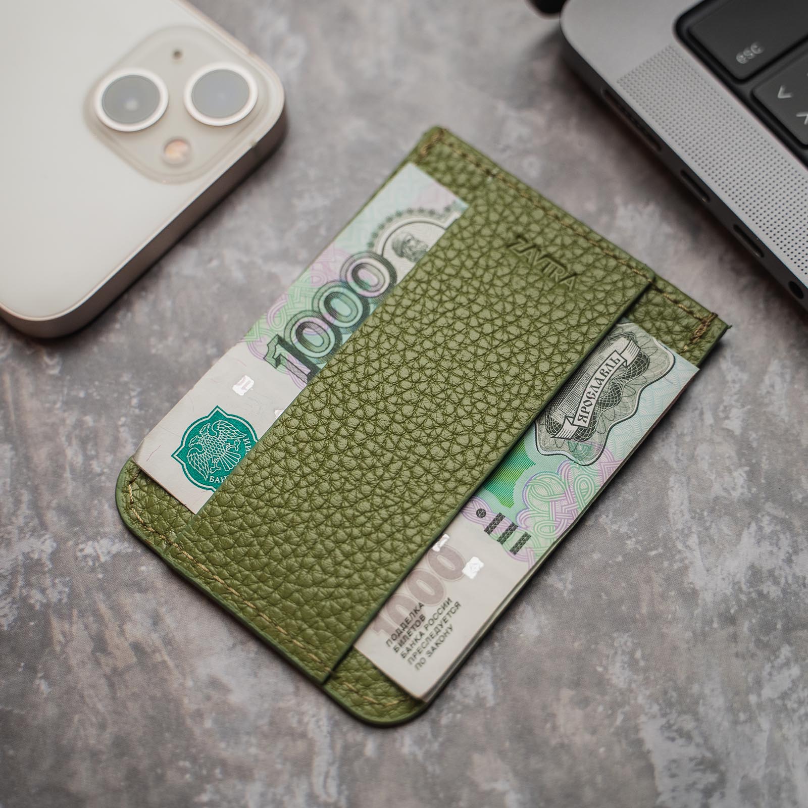 Компактный кожаный кошелек Zavtra вмещает 4–5 банковских либо иных карт, права или пропуск, а также наличные на несколько дней.