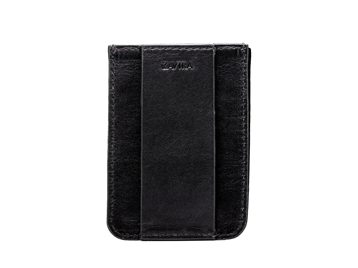 Компактный кожаный кошелек Zavtra вмещает 4–5 банковских либо иных карт, права или пропуск, а также наличные на несколько дней.